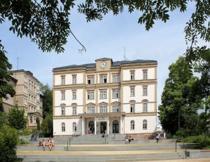 Die Hochschule Mittweida steht nordwestlich der Innenstadt frei an einem Platz.