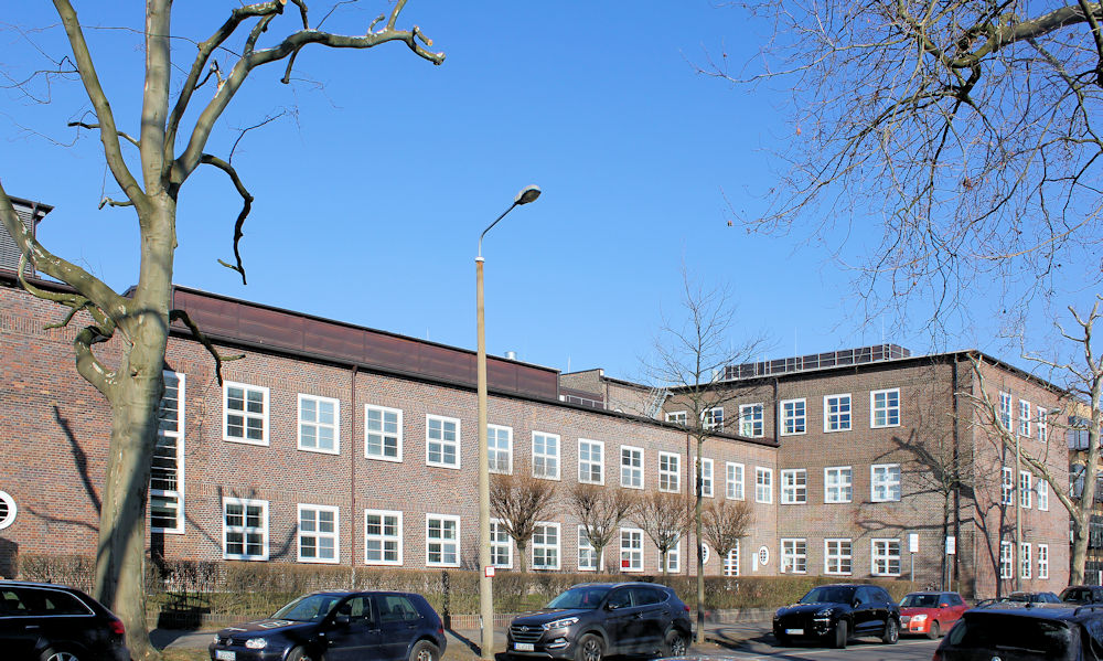 - langgestreckter Ziegelbau, erhöhter seitlicher Kopfbau, angrenzend Hörsaalgebäude und flacher Schwesternwohntrakt
