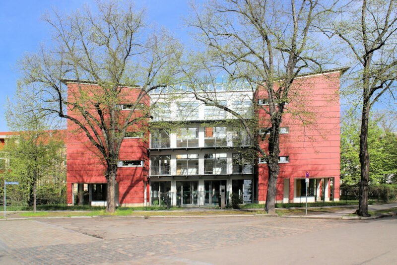 Das Internationale Begegnungszentrum „Werner-Heisenberg-Haus“ in Leipzig steht zwischen dem Ostplatz und dem Friedenspark in offener Bebauung.