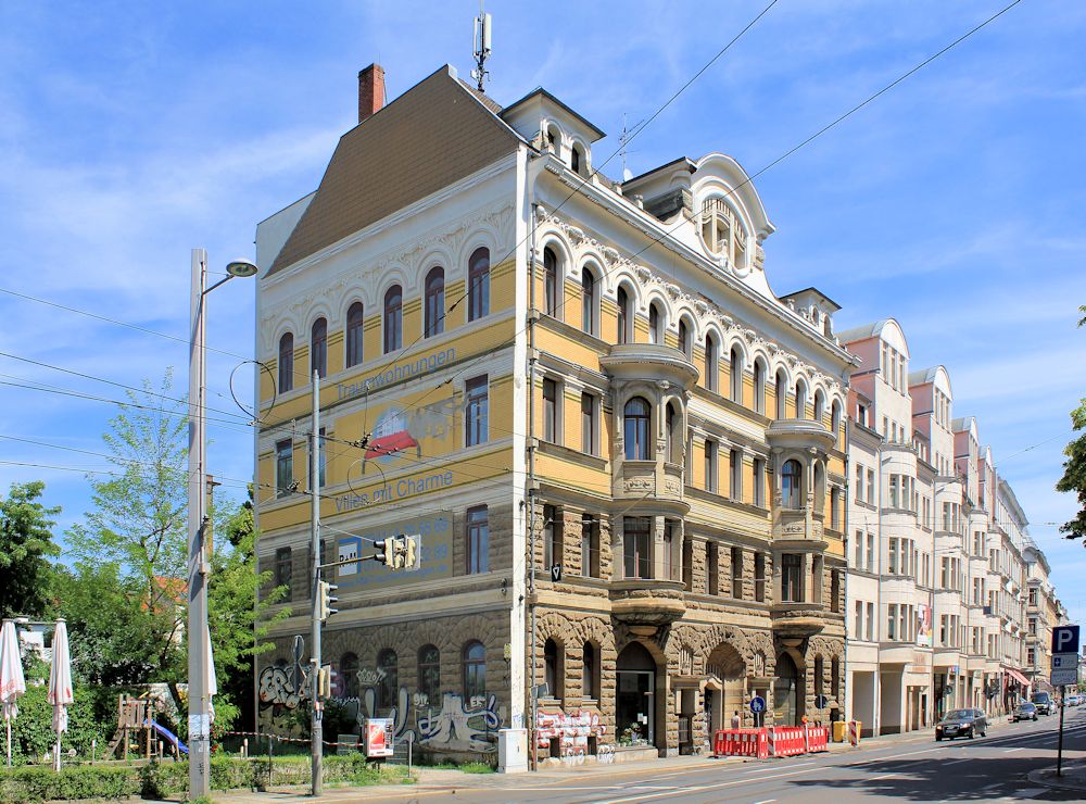 Das Wohnhaus Jahnallee 14 Leipzig steht am nordwestlichen Rand der Innenstadt nahe dem Waldplatz in Blockrandbebauung.