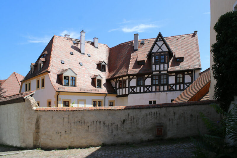 Der Jahnsche Hof steht nahe dem Landesgymnasium St. Afra in Meißen in offener Bebauung.