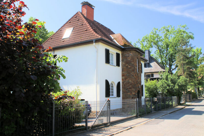 - freistehendes, zurückgesetztes Wohnhaus