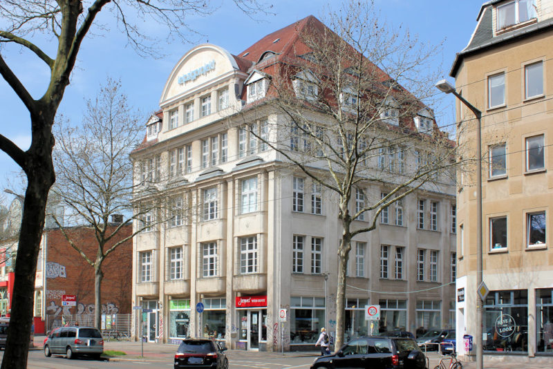 Das ehem. Warenhaus „Joseph-Konsum“ in Lindenau steht zwischen dem Felsenkeller und dem Karl-Heine-Kanal in Blockrandbebauung.