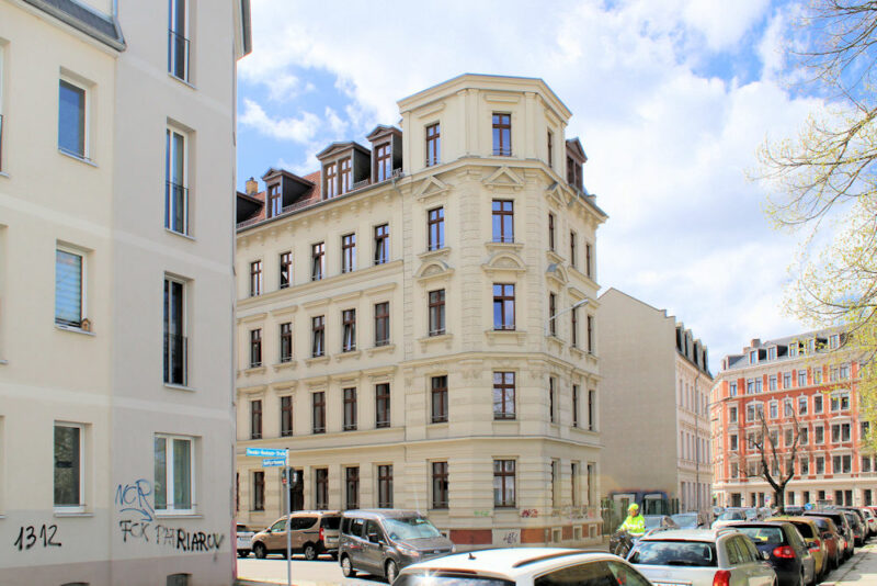 Das Wohnhaus Kohlgartenweg 6 in Anger-Crottendorf steht geschlossener Blockrandbebauung zwischen der Riebeckstraße und dem S-Bahnhof Anger-Crottendorf.