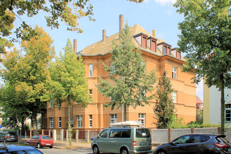 Das Wohnhaus Kommandant-Prendel-Allee 97 in Stötteritz steht in offener Bebauung nahe dem Völkerschlachtdenkmal.