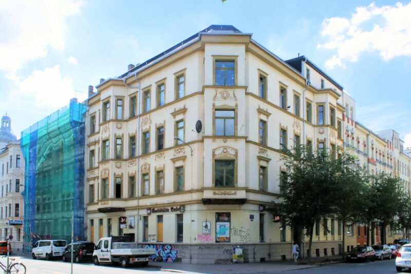 Das Wohnhaus Konradstraße 58 Volkmarsdorf steht in offener Blockrandbebauung zwischen Rabet und Lukaskirche in Volkmarsdorf.