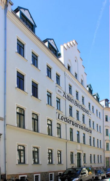 - Das Gebäude der Lederwarenfabrik Albin Berlepsch in Leipzig ist saniert.