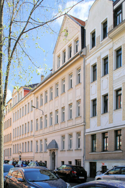 Das Wohnhaus Franckestraße 6 in Anger-Crottendorf steht in geschlossener Blockrandbebauung nahe dem Liselotte-Herrmann-Park.