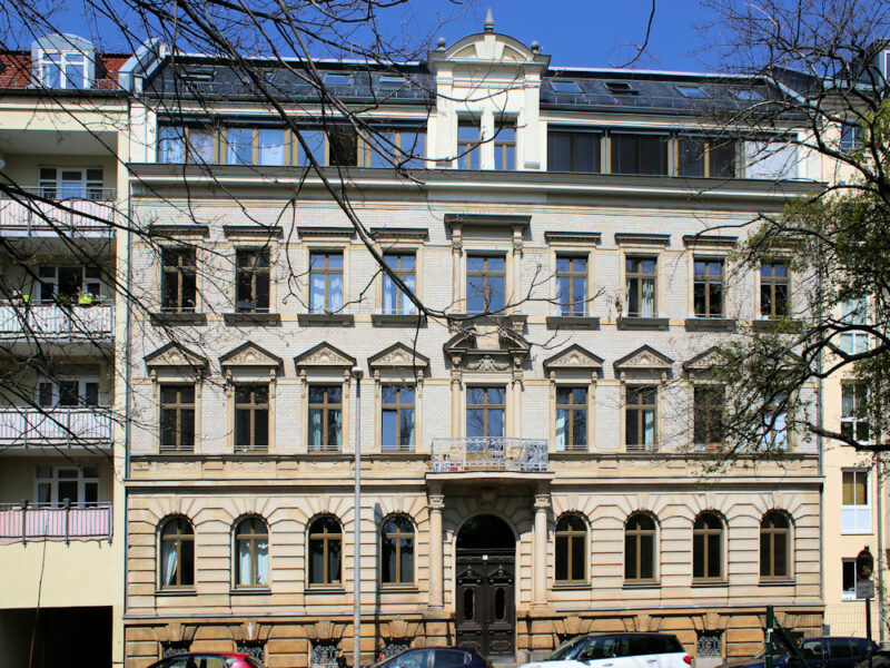 Das Wohnhaus Kreuzstraße 1c in Leipzig steht im Graphischen Viertel zwischen Reclam-Karree und Brockhaus-Zentrum in geschlossener Blockrandbebauung.