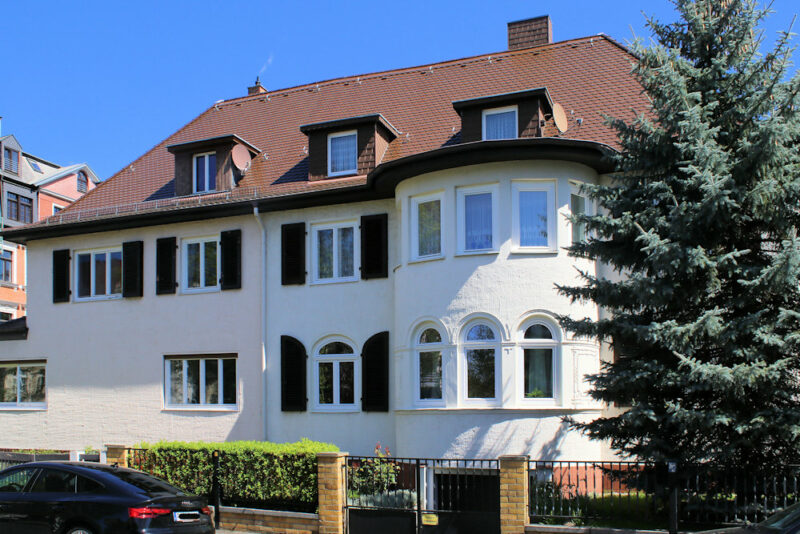 Das Wohnhaus Lumumbastraße 14 in Gohlis steht in offener Bebauung nahe dem Gohliser Schlösschen.