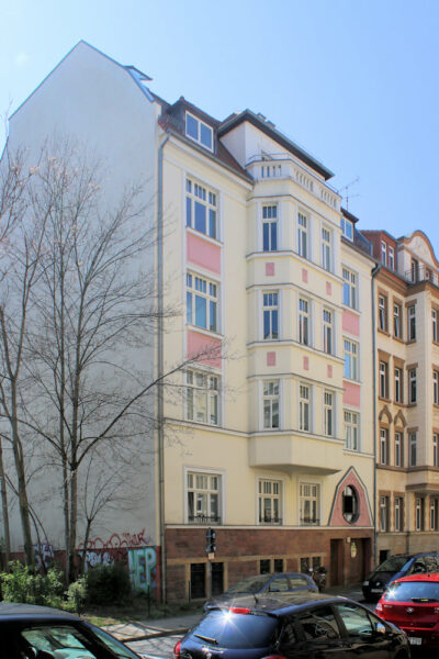 Das Wohnhaus Kreuzstraße 4 in Leipzig steht im Graphischen Viertel zwischen Reclam-Karree und Brockhaus-Zentrum in geschlossener Blockrandbebauung.