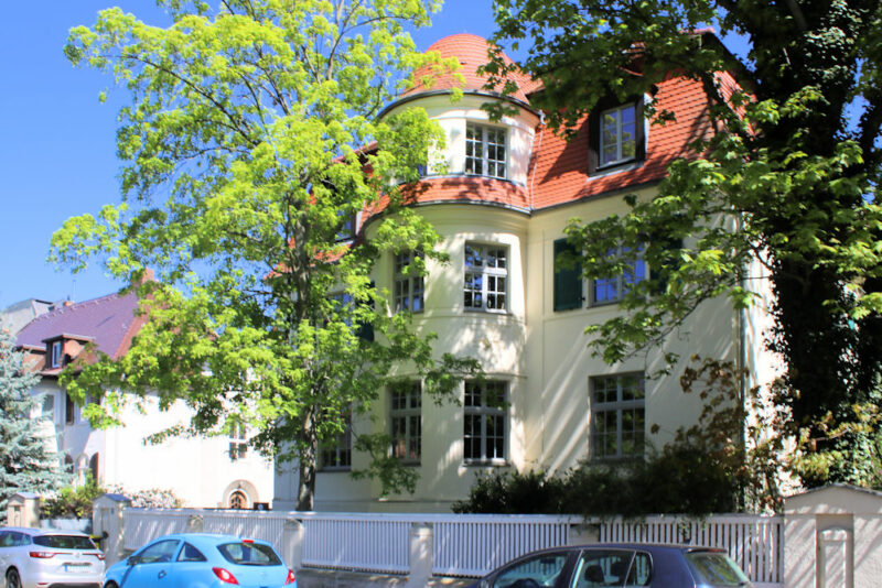 Die Villa Lumumbastraße 12 in Gohlis steht in offener Villenbebauung nahe dem Gohliser Schlösschen.