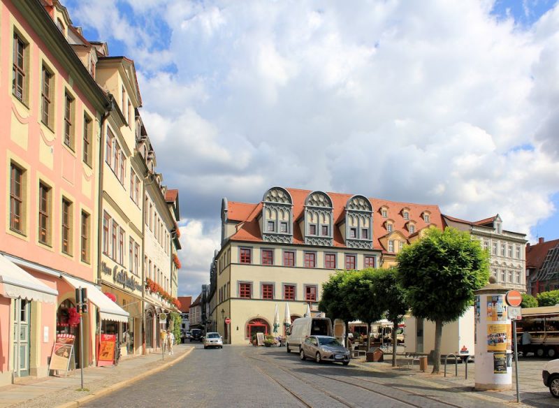 Das Wohn- und Geschäftshaus Markt 10 in Naumburg steht in Blockrandbebauung.