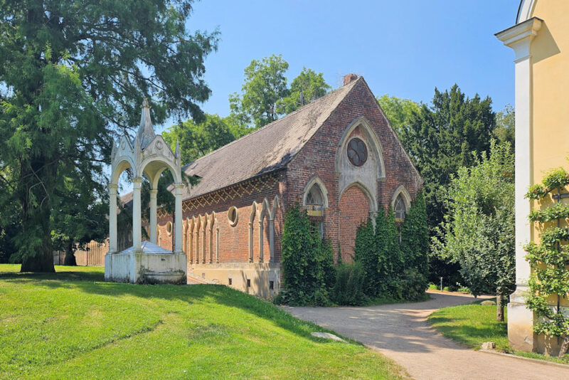 Der Marstall steht im südlichen Teil des Wörlitzer Parks nahe der St. Petrikirche.