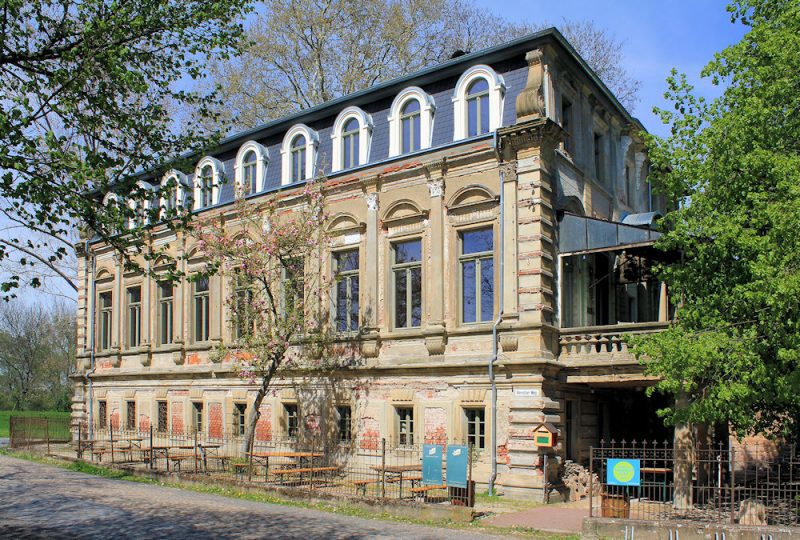 Der Mühlenhof in Göbitz steht am westlichen Ortsrand in der Aue der Weißen Elster.