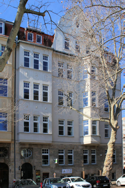 Das Wohnhaus Grassistraße 20 in Leipzig steht in heute offener Blockrandbebauung im Musikviertel zwischen Bundesverwaltungsgericht und Clara-Zetkin-Park.