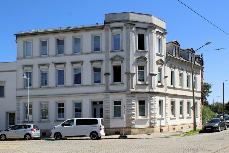 Das Wohnhaus Poststraße 14 steht nahe dem Stadtpark Naumburg in geschlossener Bebauung.