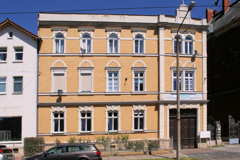 Das Wohnhaus Poststraße 2 steht nahe dem Stadtpark Naumburg in geschlossener Bebauung.