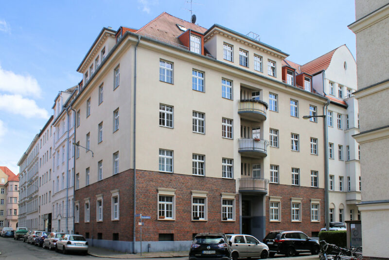Das Wohnhaus Neumannstraße 8 in Anger-Crottendorf steht geschlossener Blockrandbebauung nahe dem Stünzer Park.