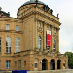 Das Opernhaus in Chemnitz begrenzt den Theaterplatz im Westen als freistehender Bau.