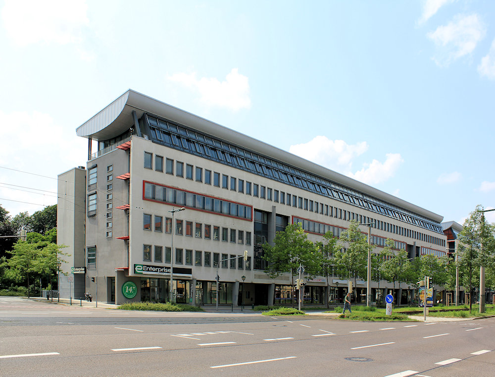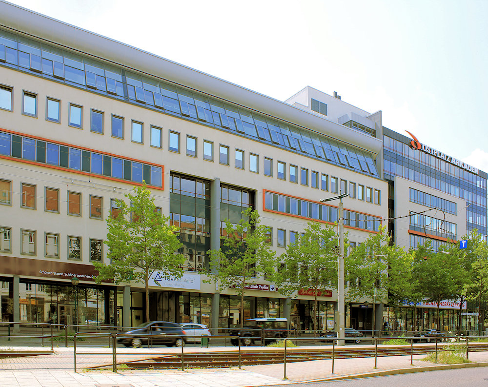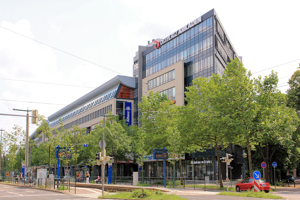 Die Ostplatzarkaden in Reudnitz bilden die Raumkante an der Prager Straße nach dem Ostplatz stadtauswärts.