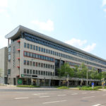 - Baukomplex aus zwei langgestreckten Baukörpern, spitzwinkligem, turmartigem Kopfbau und halbrundem rückwärtigem Anbau