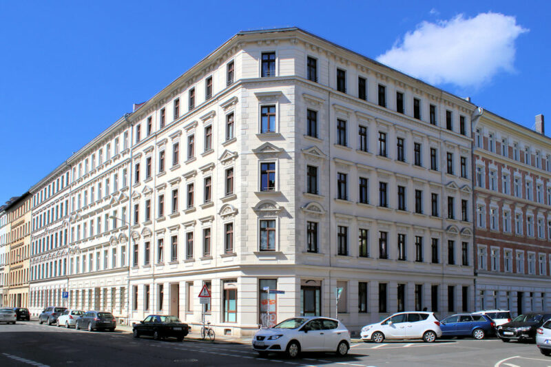 Das Wohnhaus Oststraße 43 steht in geschlossener Blockrandbebauung zwischen dem Ostplatz und der Riebeckstraße nahe dem Lene-Voigt-Park Leipzig.