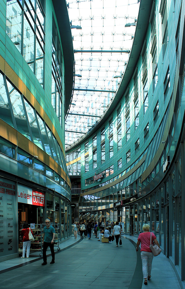 - massiger Baublock mit geschwungener Passage
