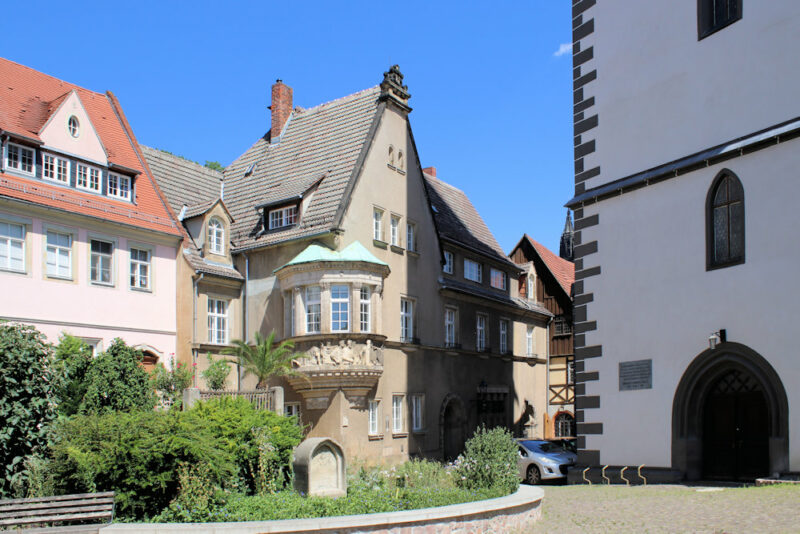 Das Pfarrhaus und Gemeindeamt der Ev.-luth. Kirchgemeinde St. Afra steht nahe der Stadtkirche in Meißen in geschlossener Blockrandbebauung.
