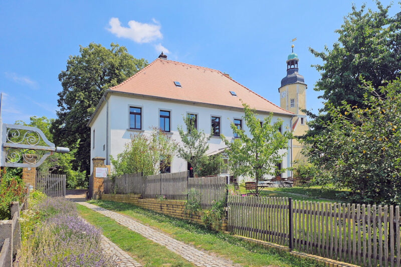 Das Pfarrhaus steht vor der Kirche in Störmthal.