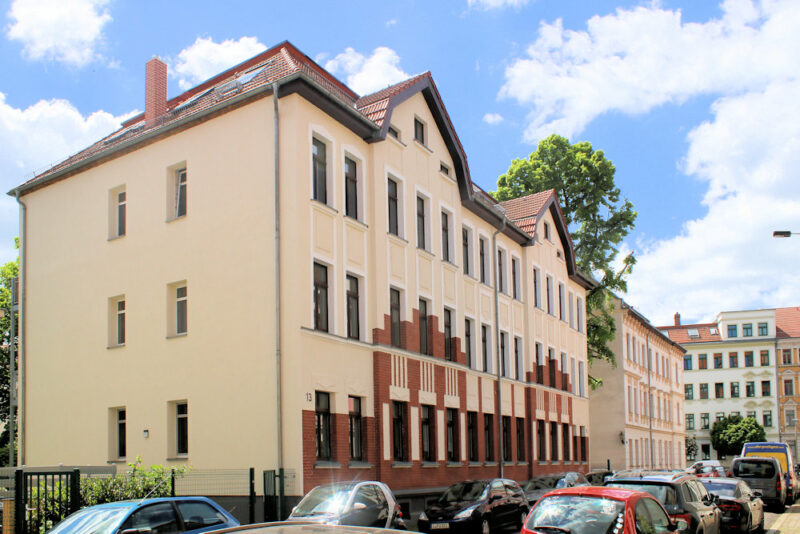 - Das Doppelwohnhaus Pörstener Straße 13/15 in Kleinzschocher ist saniert.
