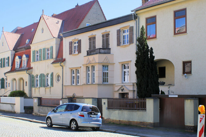 Das Wohnhaus Poetenweg 19 in Gohlis steht in Zeilenbebauung Bebauung nahe dem Gohliser Schlösschen.