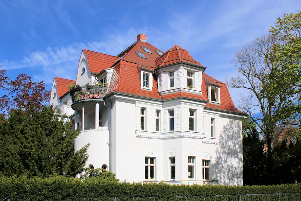 Die Villa Poetenweg 27 in Gohlis steht in offener Villenbebauung gegenüber dem Gohliser Schlösschen.