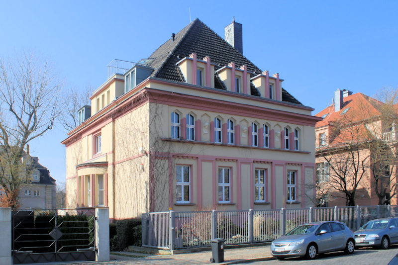 Die Villa Poetenweg 49 in Gohlis steht in offener Villenbebauung nahe dem Gohliser Schlösschen.