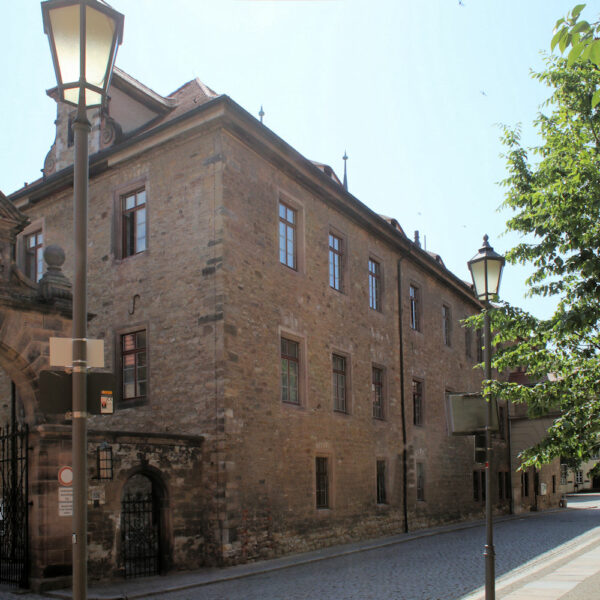 Der ehem. Reisigenstall in Merseburg steht westlich des Schlosses Merseburg im Vorhof als Solitärbau.