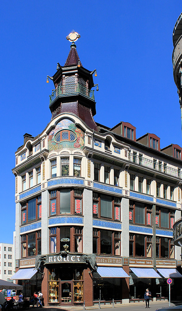 Das Riquethaus in Leipzig steht an der Reichsstraße neben Specks Hof als Eckbau, heute freistehend.