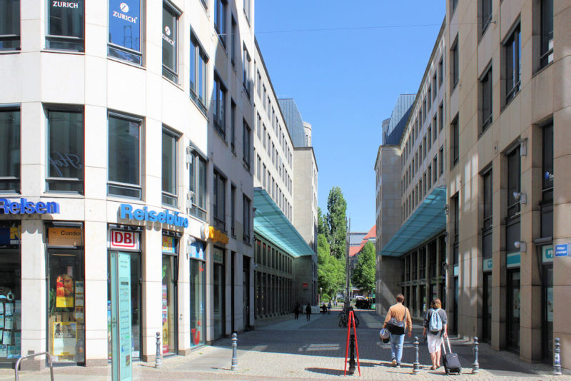 - Straßenverbindung zwischen Ritterstraße und Hauptbahnhof als Durchgang im Forum am Brühl.