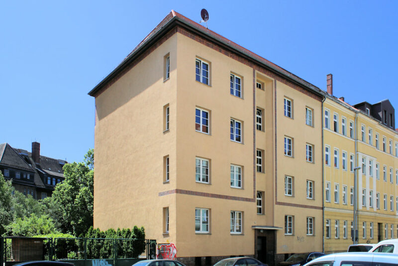 Das Wohnhaus Salzmannstraße 18 in Eutritzsch steht zwischen dem Nordfriedhof und der Delitzscher Straße in geschlossener Blockrandbebauung.