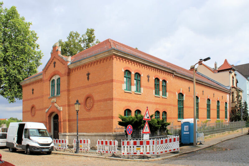 Die Sporthalle der Georgen-Schule steht nordwestlich der Altstadt von Naumburg nahe dem Dom zu Naumburg in offener Bebauung.