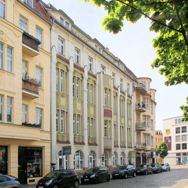 - Gebäude auf T-förmigem Grundriss mit modernem Anbau im Hof