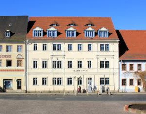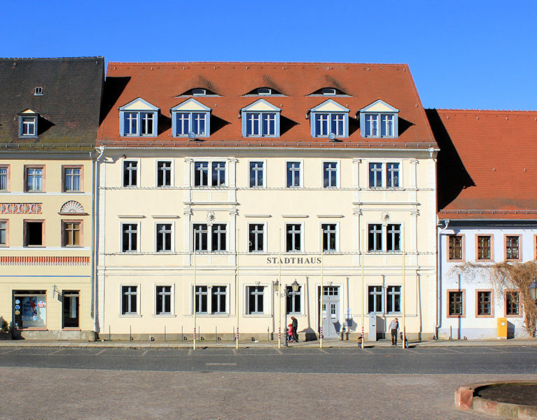 Das Stadthaus in Grimma steht an der Westseite des Marktplatzes.