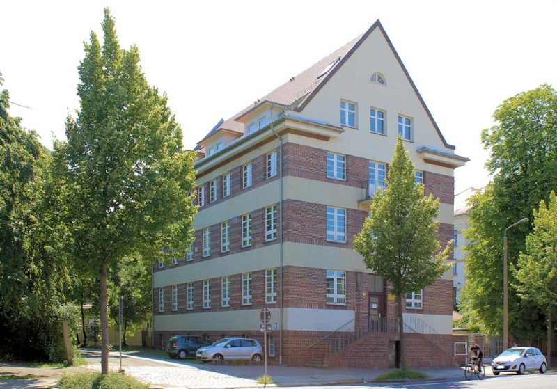 Das Gebäude der Städtischen Untersuchungsanstalt in Reudnitz steht frei am Reudnitzer Park.