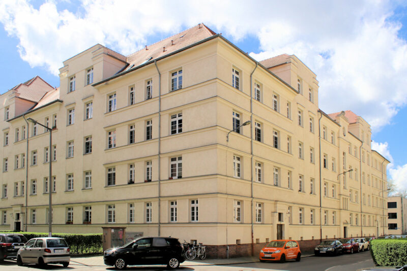 Die Wohnanlage Stünzer Straße 7 bis 11 in Anger-Crottendorf steht in offener Blockrandbebauung nahe dem Ramdohrschen Park.