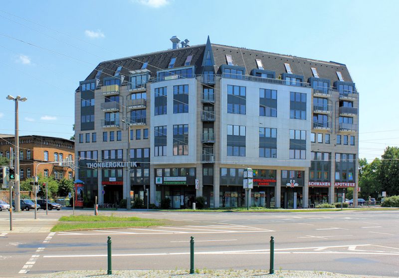 Die Thonbergklinik in Reudnitz-Thonberg steht in offener Blockrandbebauung gegenüber dem Technischen Rathaus.