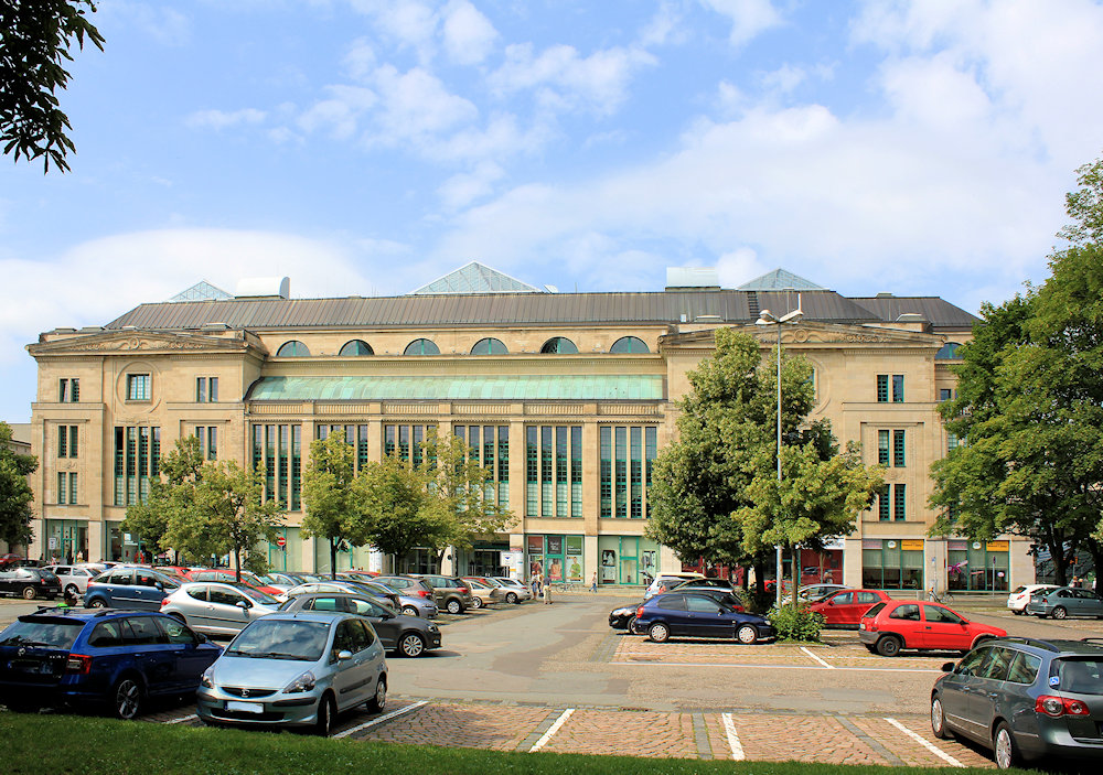 Das Tietz in Chemnitz ist ein freistehender Bau südlich der Innenstadt.