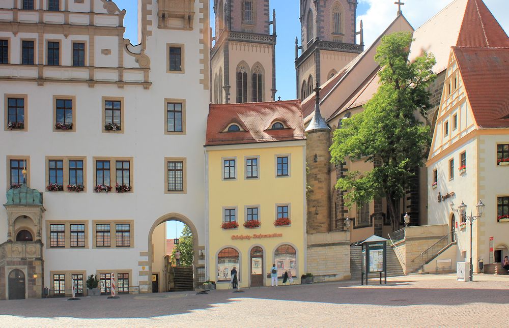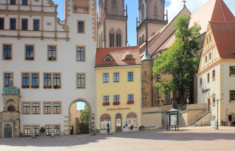 Die Tourist-Information steht am Neumarkt in Oschatz vor der Stadtkirche und neben dem Rathaus.