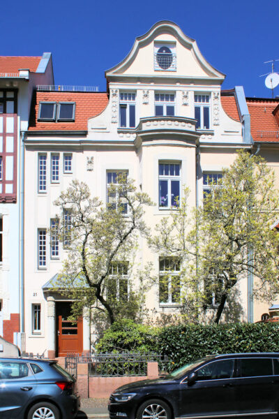 Das Wohnhaus Trufanowstraße 21 in Leipzig steht in Zeilenbebauung nahe dem Gohliser Schlösschen in Leipzig.