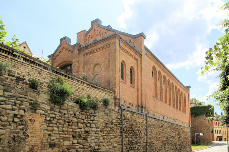 Die Turnhalle des Domgymnasiums in Merseburg steht westlich des Schlosses Merseburg hinter dem Krummen Tor als Solitärbau.