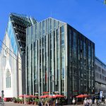 - Hauptgebäude und Paulinum: Naturstein-Glasfassade,