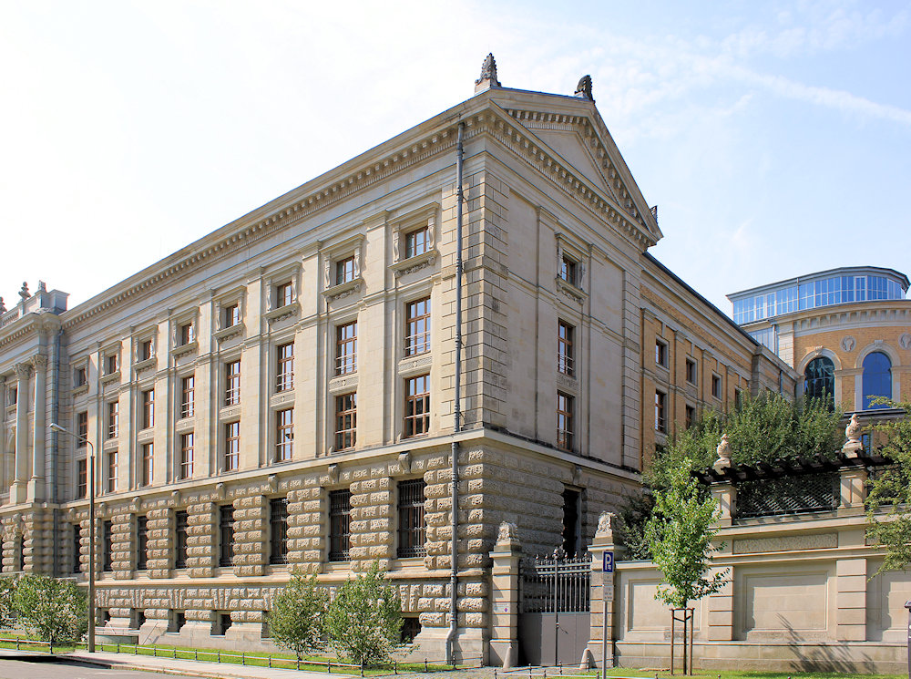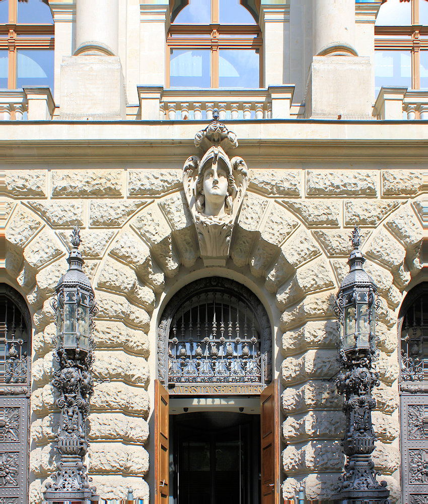 Die Universitätsbibliothek Albertina Leipzig ist Teil der monumentalen Großbauten des späten 19. Jahrhunderts im Musikviertel und steht hinter dem Justizpalast.